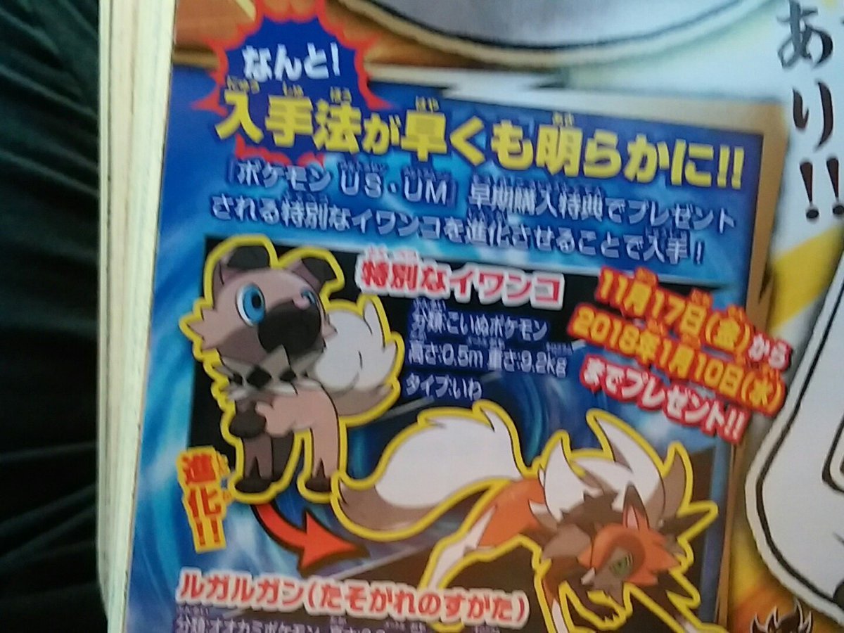 "Rockruff Distribution for Dusk Lyconroc confirmed for November 17th to January 10th."