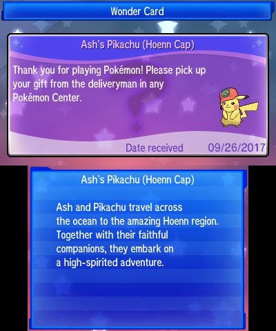 "Hoenn Cap Pikachu now live, code is still PIKACHU20. Reminder you can only get one Pikachu per save file."